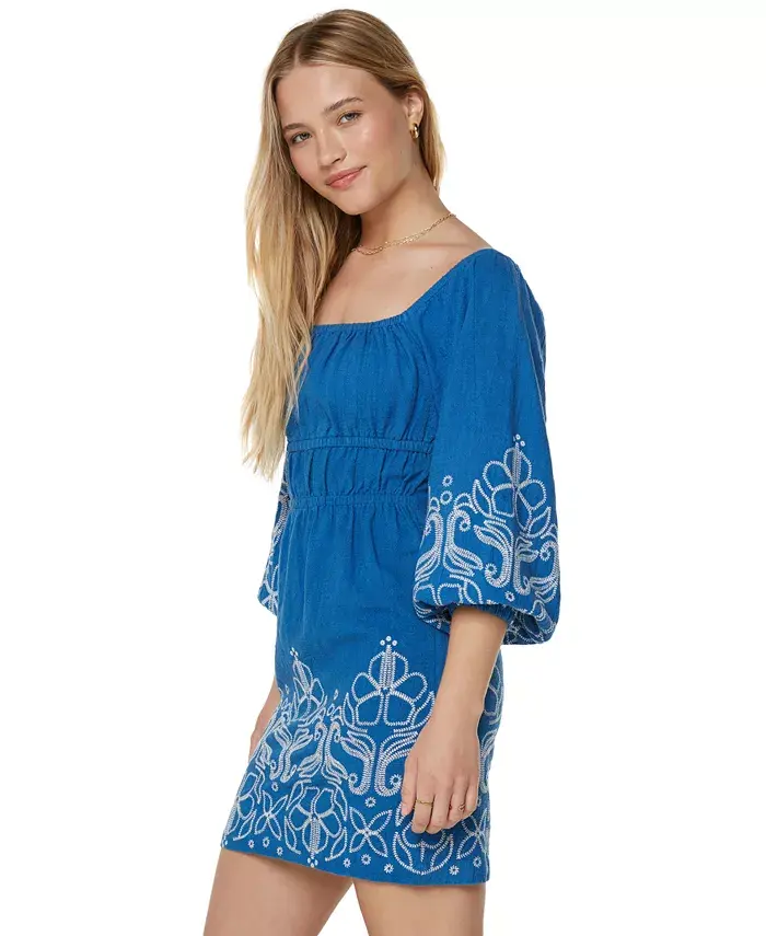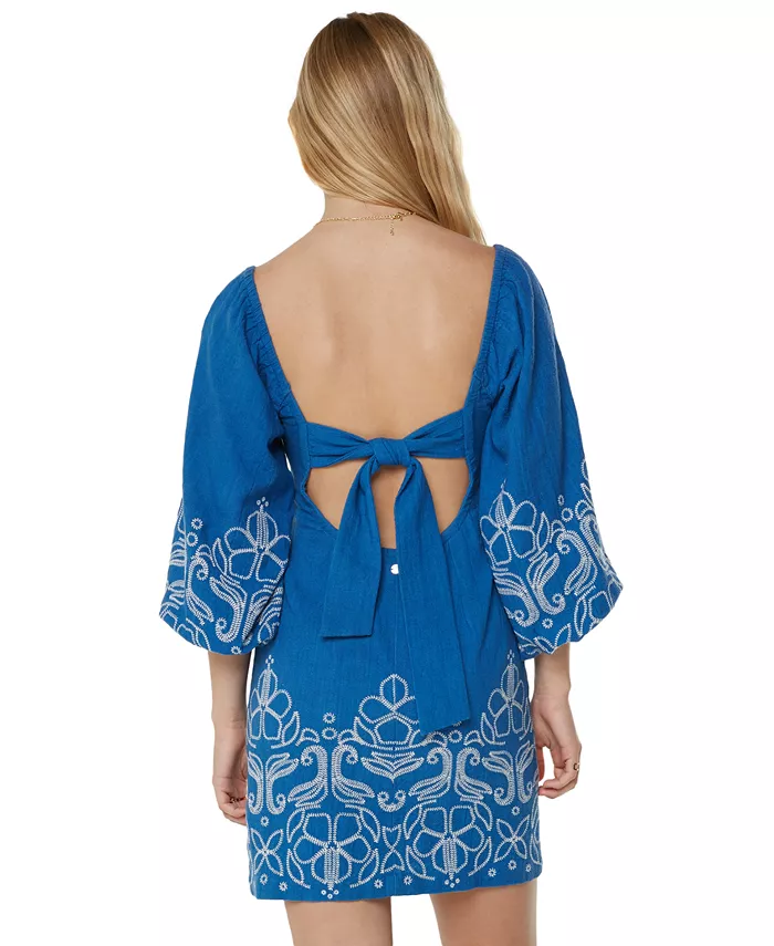 Roxy добавит вашему образу сияния в этом хлопковом платье с открытой спиной. Объемные рукава и яркая вышивка делают эту модель особенной.