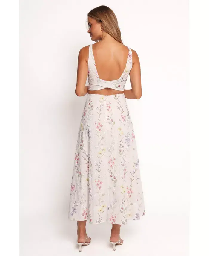 Это платье миди длины идеально подходит для создания весёлого и женственного образа! Элегантный круглый вырез, нерегулируемые бретели и открытая спина с завязкой, придающей образу ещё больше изюминки.