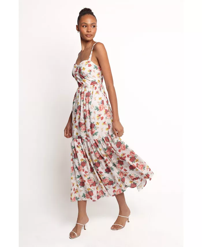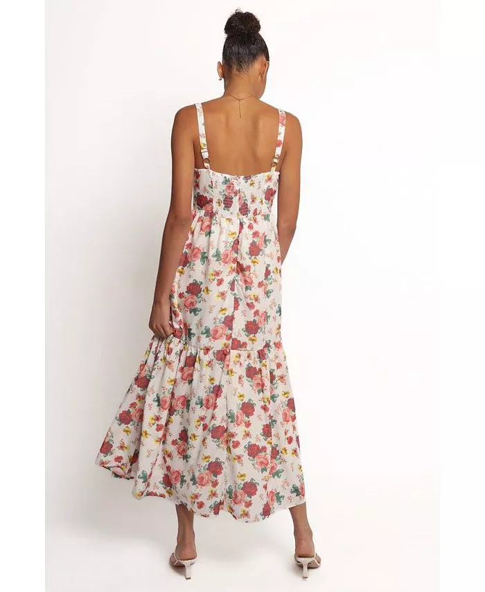 Это платье макси с классическим принтом в виде роз идеально подходит для садовых вечеринок, бранчей или летних вечеров. Вырез сердечком и регулируемые бретели позволяют подогнать его под ваш стиль.