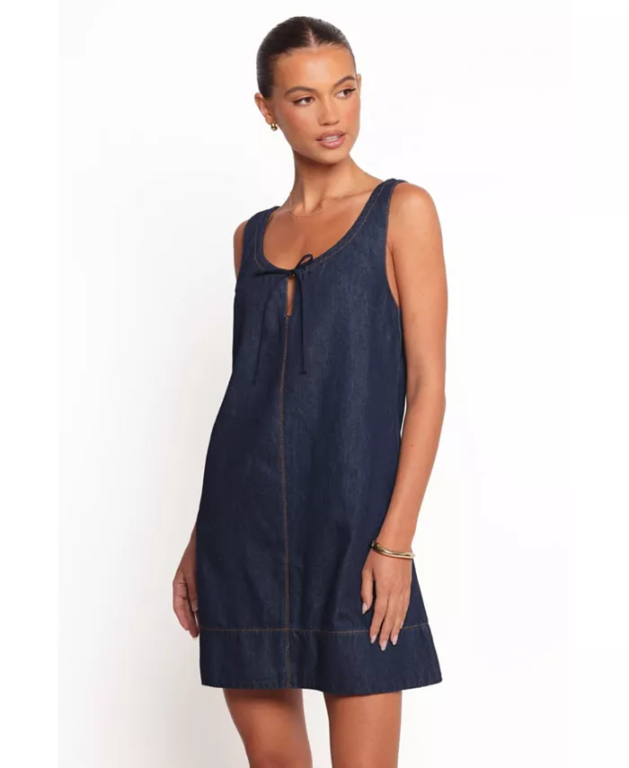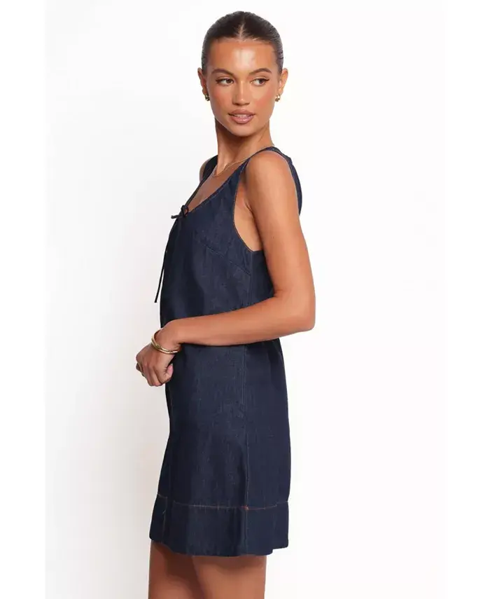 Непринужденно шикарное и невероятно универсальное мини-платье Azen из тёмного денима станет вашим новым фаворитом в гардеробе. Длина мини, круглый вырез с регулируемым завязкой и функциональная застёжка на пуговицы сзади обеспечивают идеальную посадку.