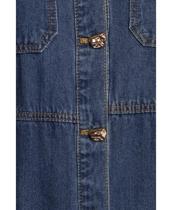 Непринужденный стиль сочетается с игривой изысканностью в мини-платье Fleming Shirt из денима. Благодаря классическому косому воротнику и подчеркивающему фигуру V-образному вырезу, это изделие представляет собой идеальный баланс между шиком и повседневностью.
