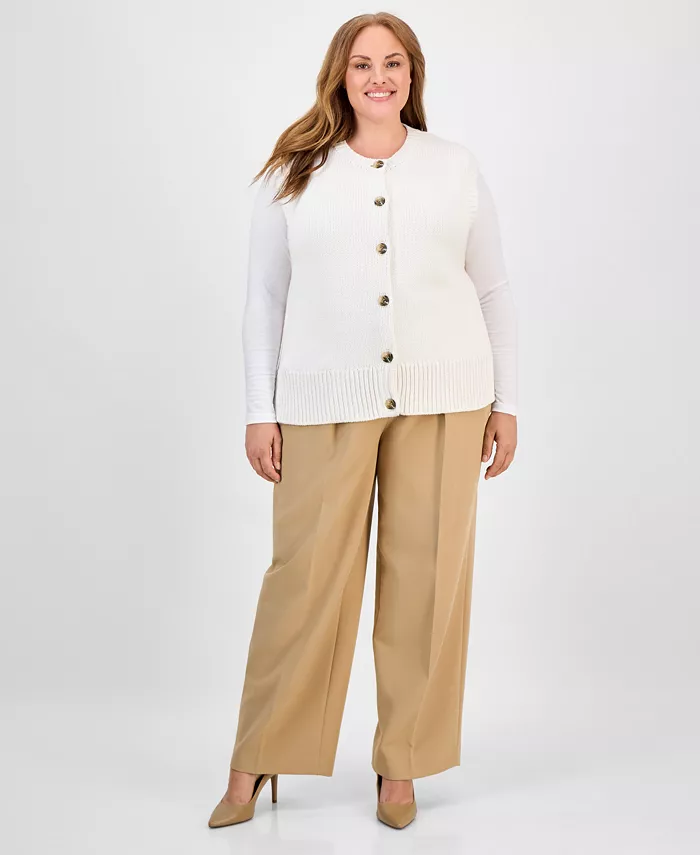 Дополните свой образ шикарным и вневременным совершенством с этим кардиганом больших размеров от Anne Klein.