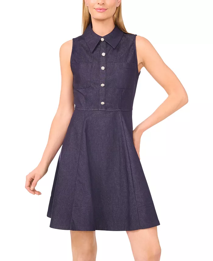Женское платье без рукавов, облегающее и расклешенное CeCe, синий 5 749₽