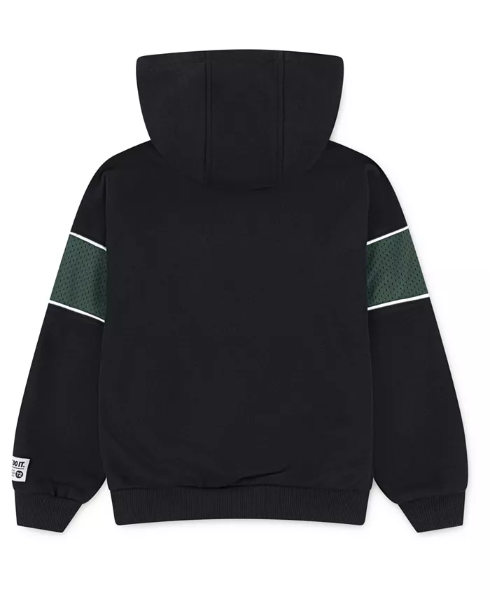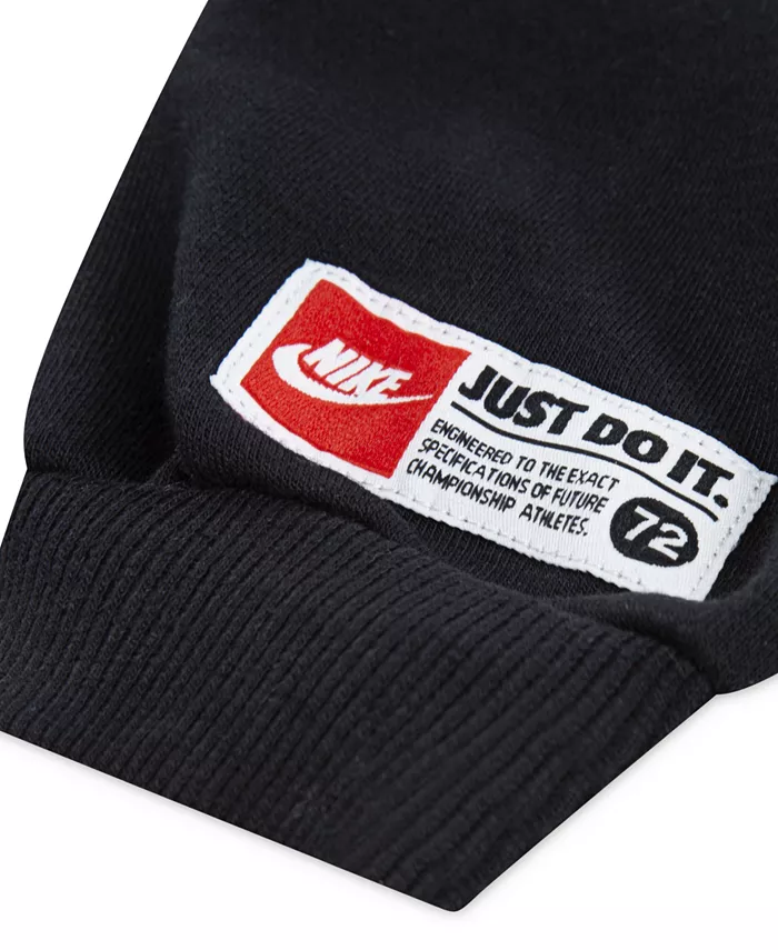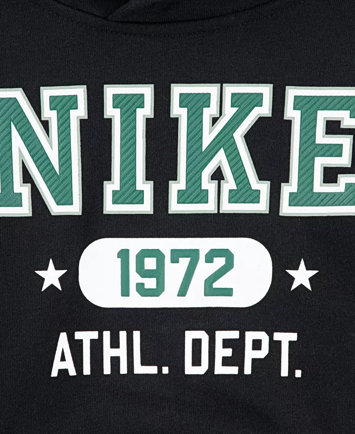 Эта спортивная толстовка с капюшоном Nike сшита из хлопкового и полиэстерового французского трикотажа и имеет свободный крой, в котором вашему малышу будет тепло и уютно.