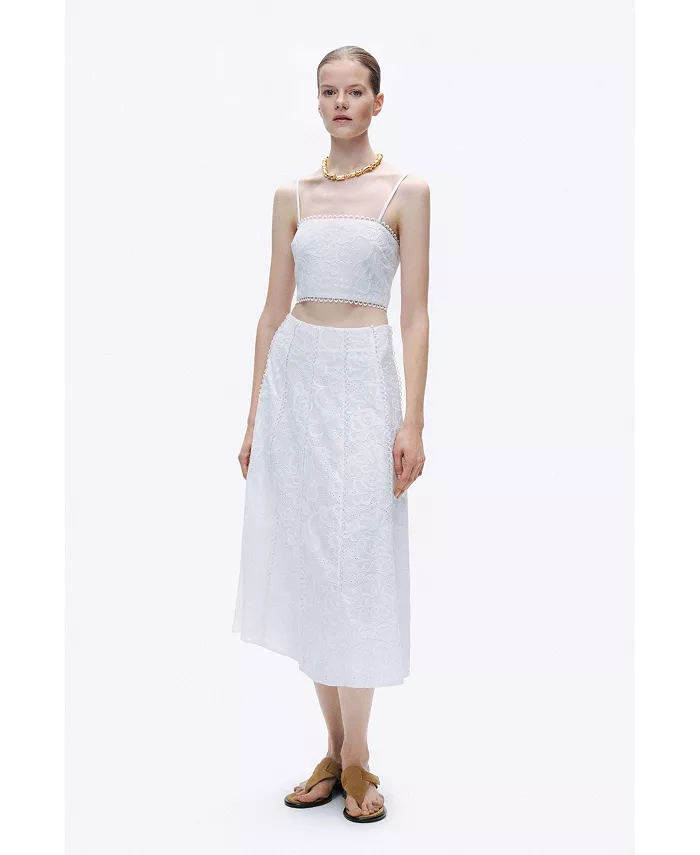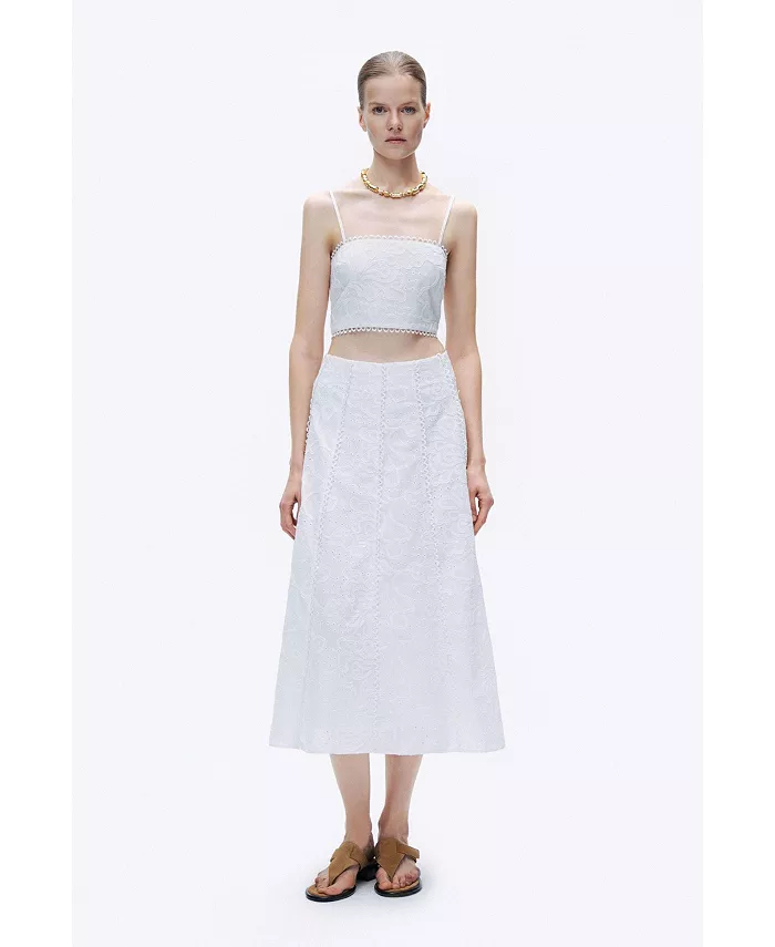 Женская юбка миди с вышивкой NOCTURNE, белый