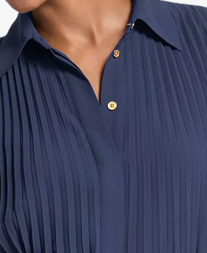 Женское плиссированное платье-рубашка Michael Kors, синий