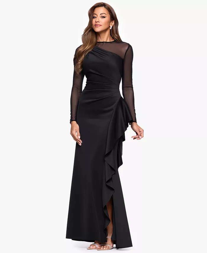 Платье Petite с круглым вырезом и длинными рукавами XSCAPE, черный 28 226₽