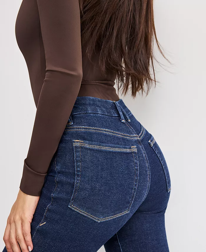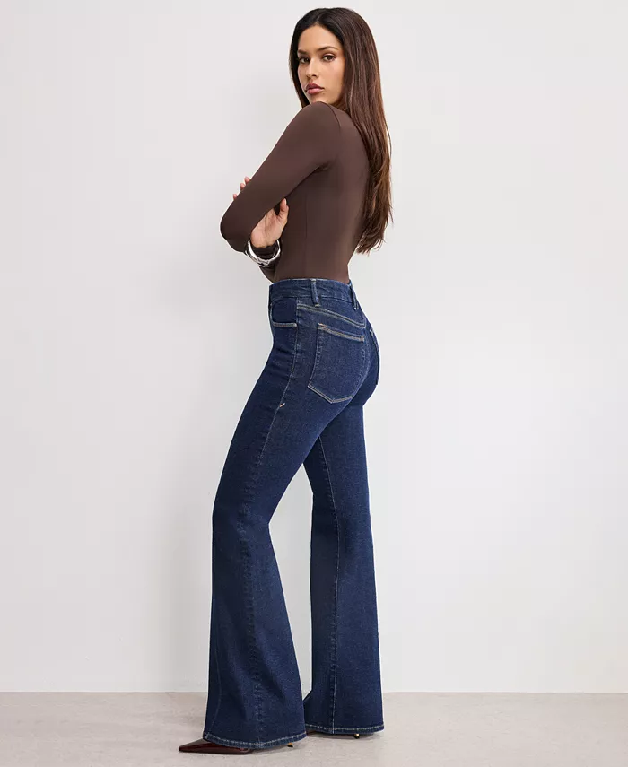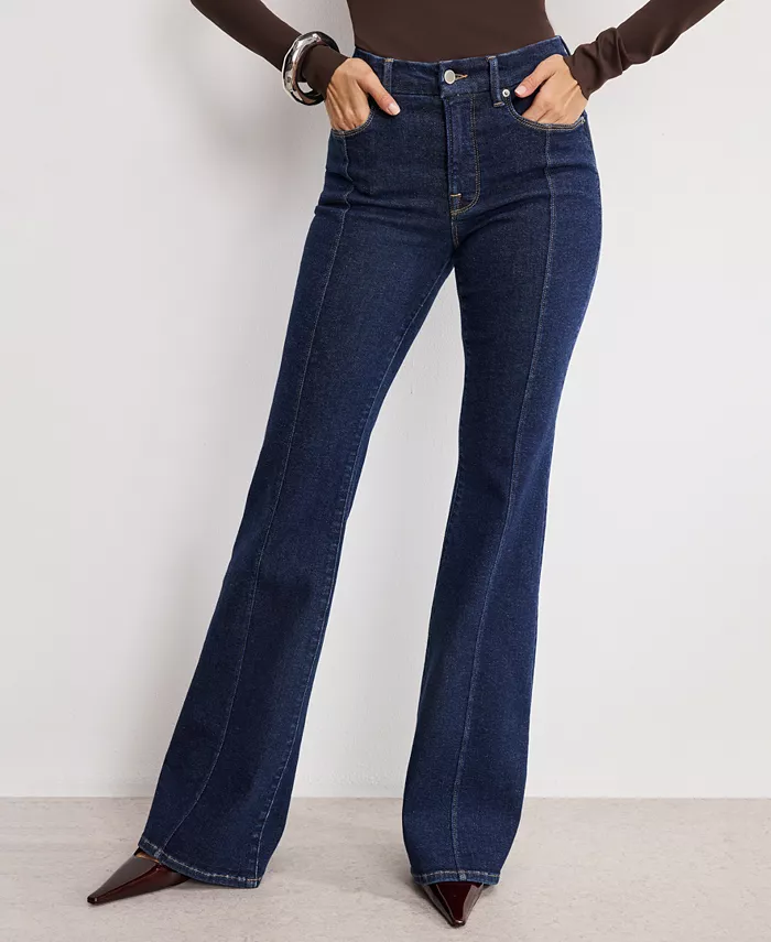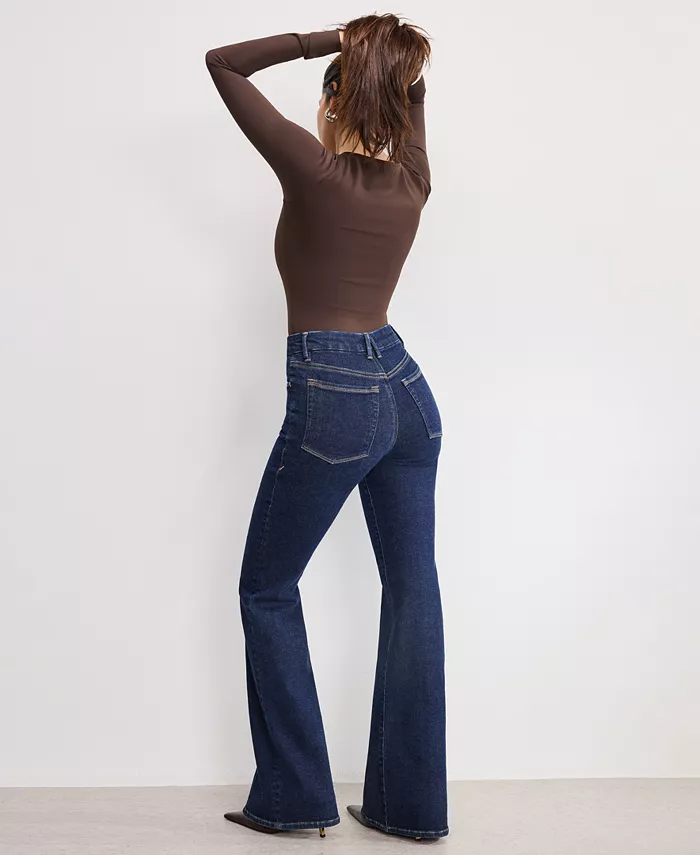 Эти джинсы-клеш Good American с эффектным, облегающим силуэтом плотно облегают бедра и ягодицы, а затем расширяются к колену. Эти джинсы с классическими деталями из денима и комфортной эластичностью станут вашим новым фаворитом в создании непринужденного стиля.