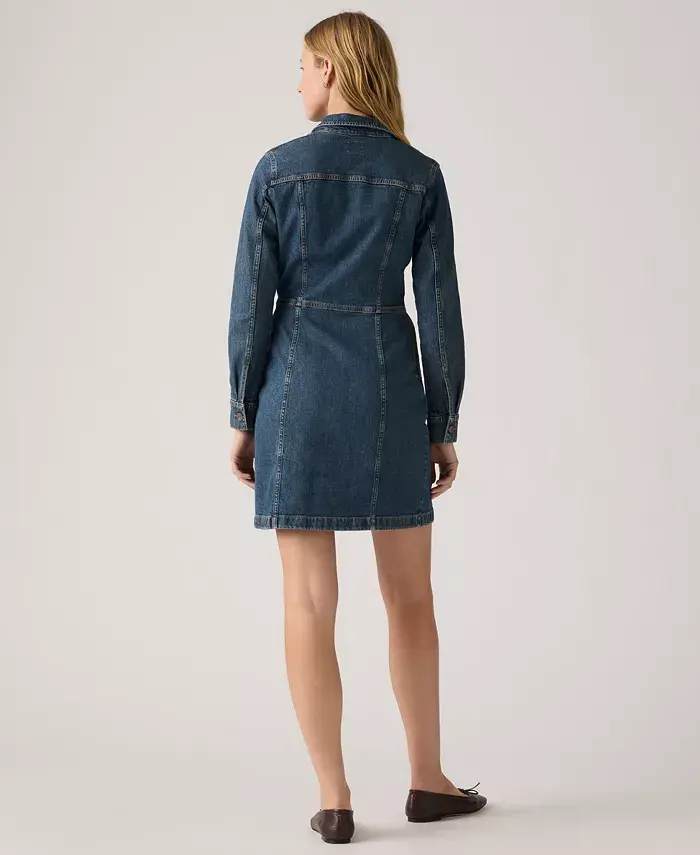 Ощутите суровый шарм этого платья Levi's с такими классическими деталями, как острый воротник, застёжка на пуговицы спереди и двойные нагрудные карманы. А-образный силуэт и длинные рукава создают свежий, привлекательный взгляд на джинсовую ткань.