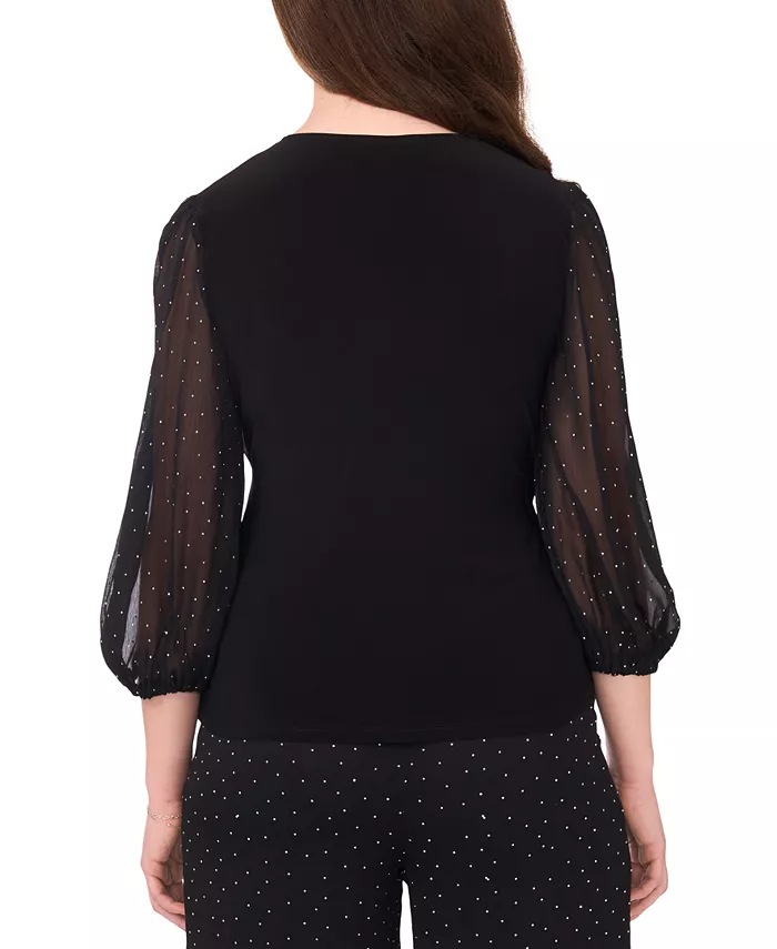 Изысканный топ MSK Petite с лёгким блеском, V-образным вырезом и мерцающими термофиксированными гвоздиками для придания образу изысканности. Удобный крой без застёжек и элегантные длинные рукава.