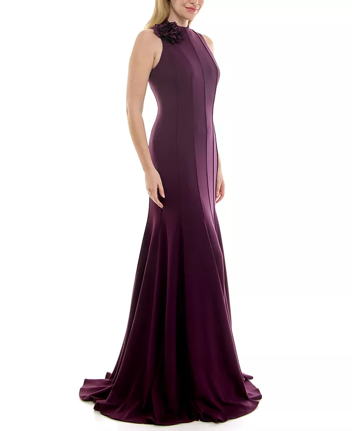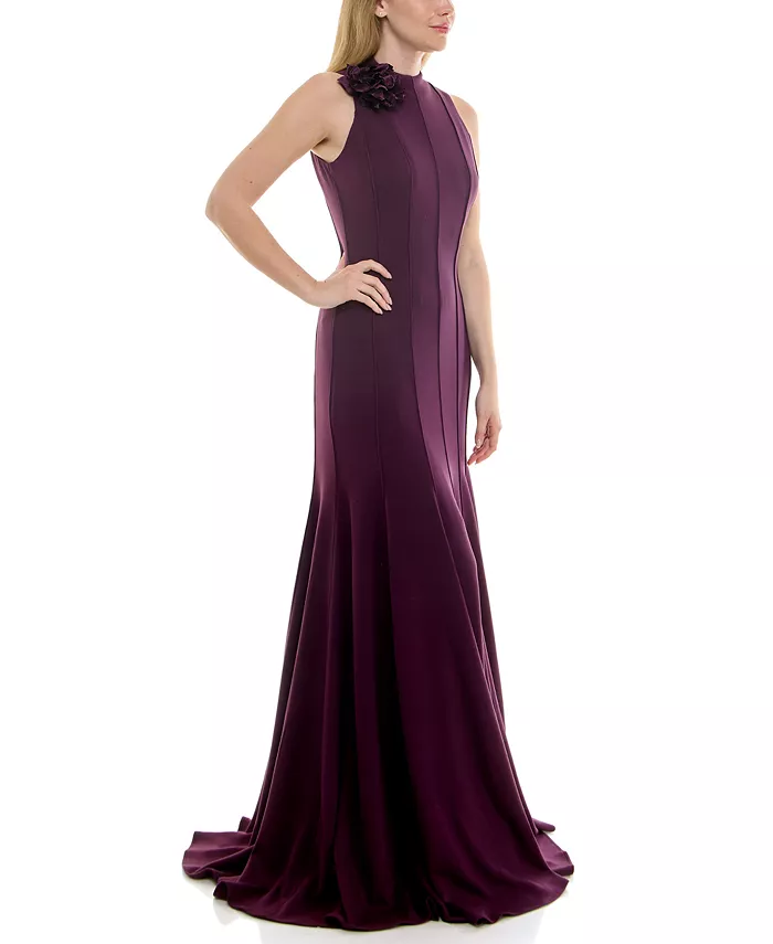 Изящная цветочная отделка добавляет романтики этому длинному платью Taylor с изысканным ложным вырезом. Изящный силуэт и молния по центру спинки создают изящный и элегантный образ.