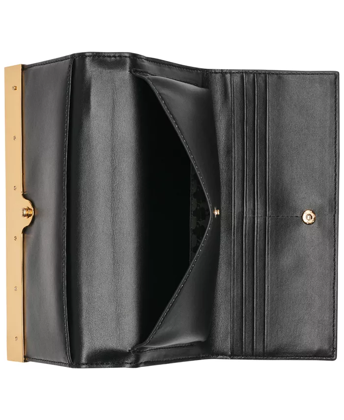 Храните все необходимое в порядке в этом кошельке KARL LAGERFELD PARIS с шестью внутренними отделениями для карт, центральным накладным карманом и дополнительным отделением на клапане. Благодаря верхней ручке и универсальному ремню через плечо, он сочетает в себе практичность и изысканный стиль.