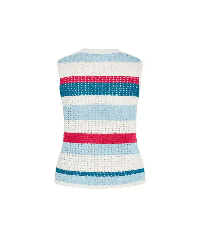 Топ Cornelia Stripe предлагает множество способов подчеркнуть ваш стиль. Это универсальный современный топ с круглым вырезом, эластичной вязкой крючком и модным полосатым узором, создающим классический образ.