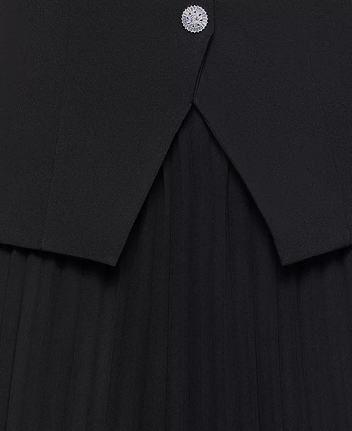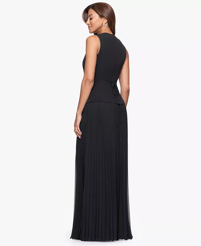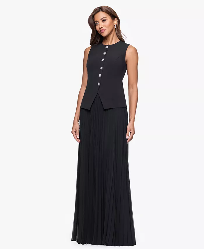Выглядите потрясающе в этом платье XSCAPE с элегантным лифом-жилетом и шикарным вырезом «лодочка». Длинная плиссированная юбка добавляет элегантности и струящейся ткани, создавая идеальный баланс между современной строгостью и классической женственностью.