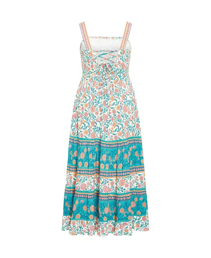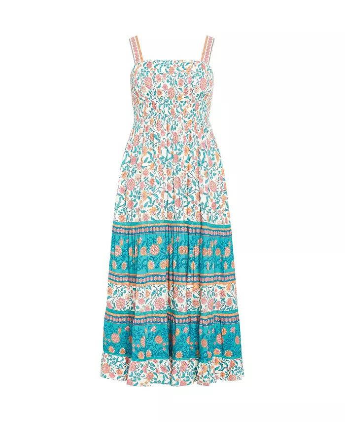 Кружевная деталь на спине, присборенный лиф, фасон «накидка через голову», детали, связанные крючком, многоуровневая юбка, подкладка, платье макси. Дополните это платье балетками и плетеной сумкой для садовой вечеринки.