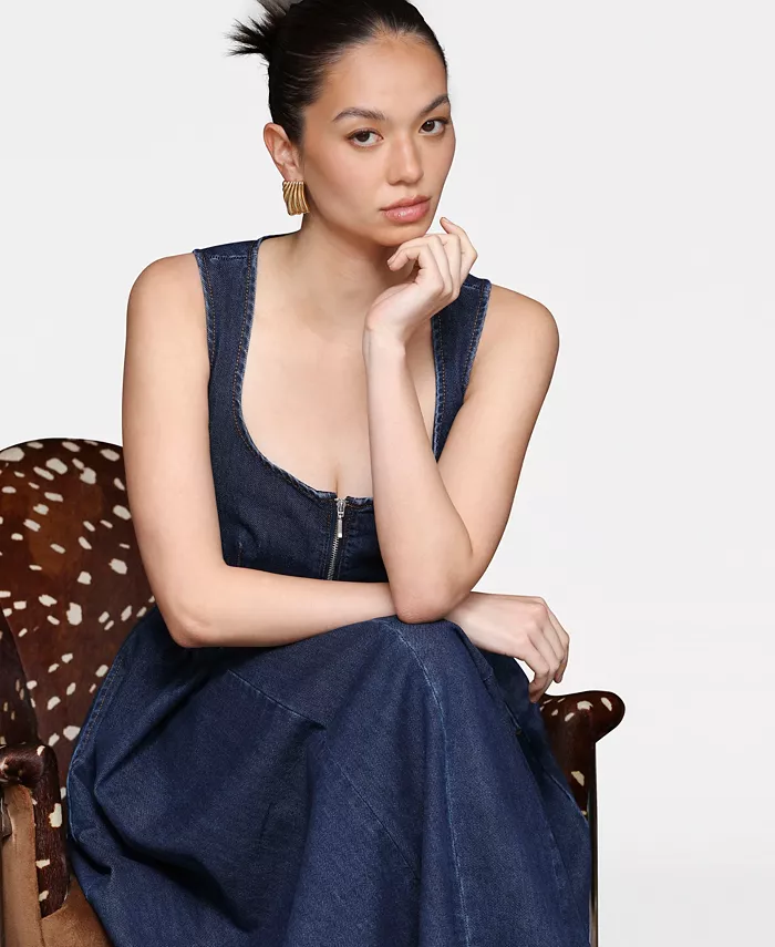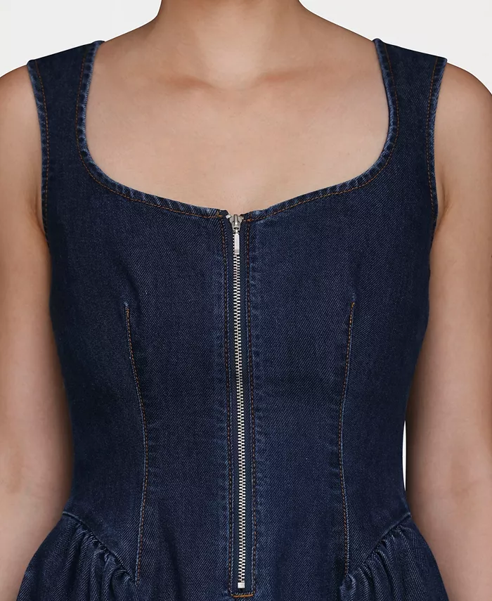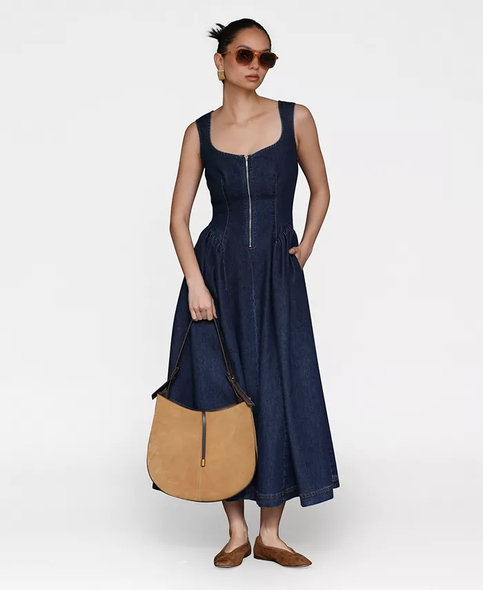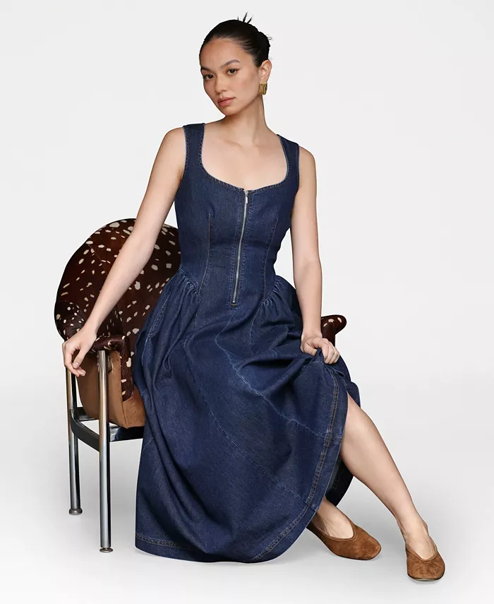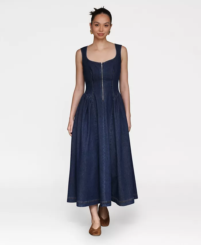 Это непринужденно элегантное миди-платье от Avec Les Filles с красивым вырезом сердечком и силуэтом без рукавов создаёт непреходящее очарование. Пышная юбка добавляет грациозности движениям, а застёжка-молния спереди придаёт современный и смелый вид.