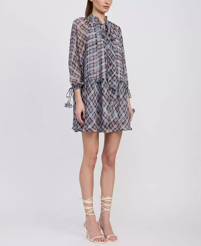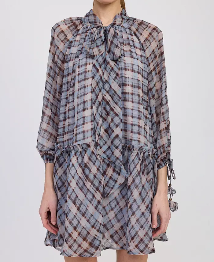 Будьте стильными и стильными в мини-платье Briar от En Saison с классическим круглым вырезом, украшенным очаровательным бантом. Длинные рукава, застежка на пуговицы спереди и плиссированный А-образный силуэт гармонично сочетают в себе элегантность и непринужденность.