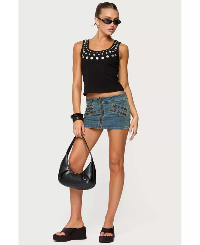 Выведите свою мини-юбку на новый уровень с этой стильной джинсовой моделью. Эта юбка-юбка с эффектной отделкой в ​​виде молнии - идеальный способ добавить нотку изысканности в ваш гардероб.