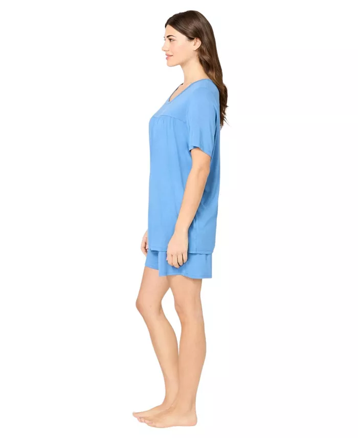 Спите стильно в этой укороченной пижаме. Этот свободный топ с круглым вырезом, короткими втачными рукавами и сборкой на спинке идеально подходит для теплой погоды. Низ с эластичной резинкой на талии и карманами в боковых швах. Длина верха: 76 см. Длина низа: 12 см. Материал: вискоза/спандекс/джерси (импортное производство). Машинная стирка.