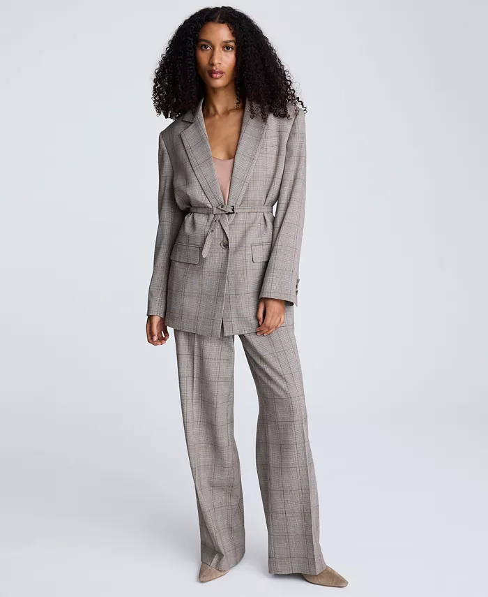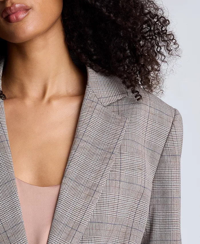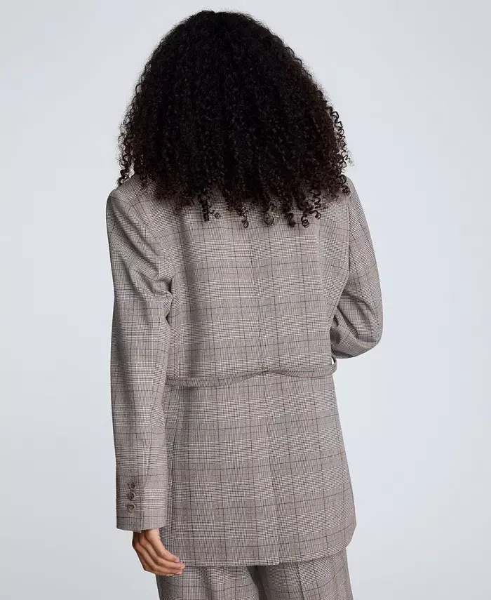 Этот элегантный и универсальный клетчатый блейзер от Kenneth Cole застёгивается на одну пуговицу для создания элегантного образа, а пояс из той же ткани подчеркивает талию, создавая изящный силуэт. Он идеально подходит для многослойного образа, легко сочетая структуру и стиль, обеспечивая уверенность в себе на весь день.