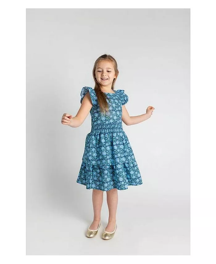 Платье для девочек с цветочным принтом и сборками на талии Florence Eiseman, синий