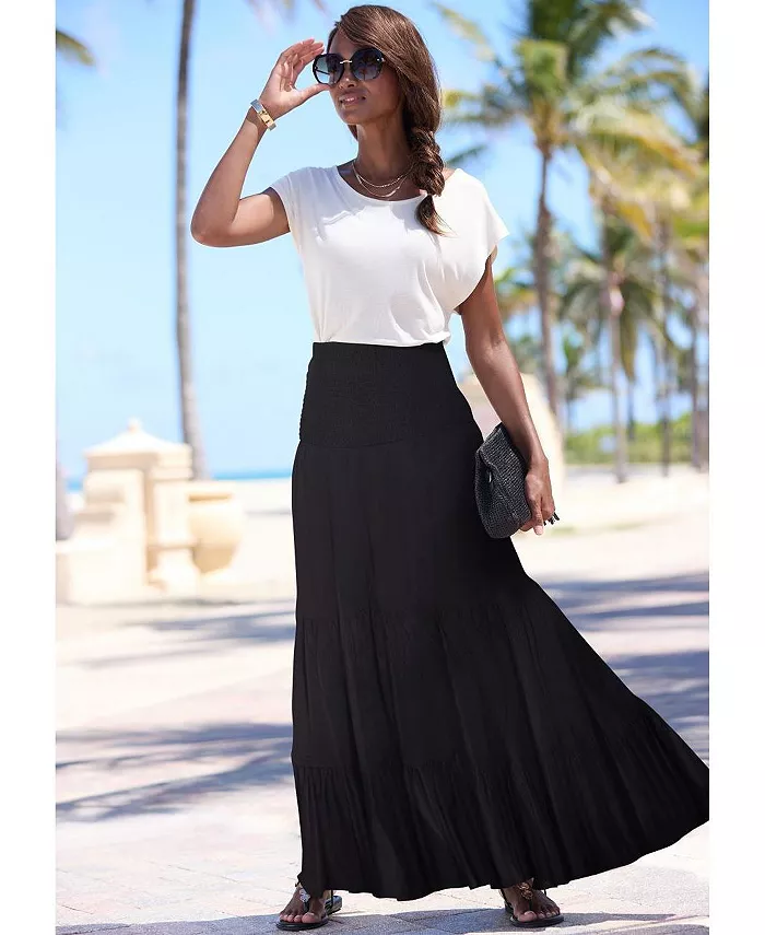 Наслаждайтесь свободой выбора с этим универсальным изделием, которое можно носить как платье и как юбку. Лиф бандо со сборками. Струящийся многоуровневый дизайн. Рисунок может отличаться. Трикотаж джерси. 100% вискоза. Импортный товар. Можно стирать в стиральной машине.