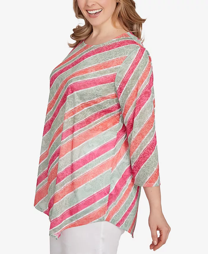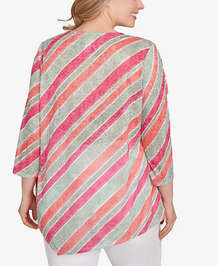 Топ больших размеров в косую полоску с бисером Ruby Rd., мультиколор