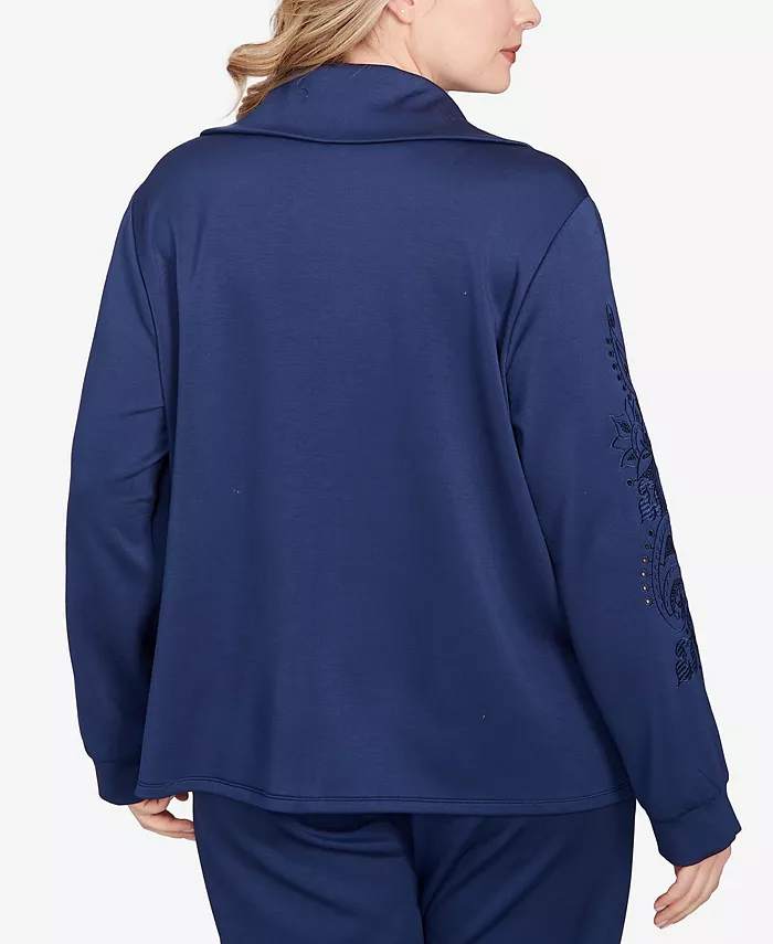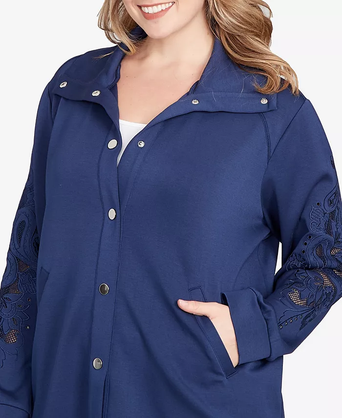 Куртка размера плюс с вышитыми цветочными вырезами на кнопках Ruby Rd., синий 11 865₽