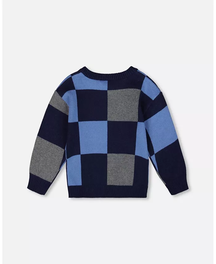 Вязаный свитер для мальчика, синий, клетчатый, детский Deux par Deux