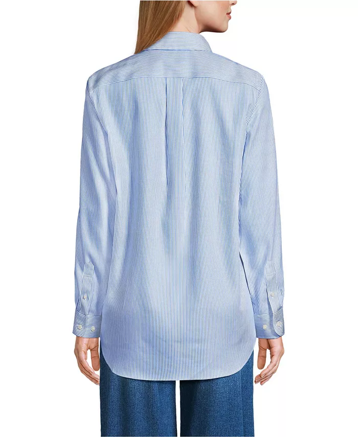 Женская рубашка No Iron Pinpoint Mens Fit Lands' End, синий