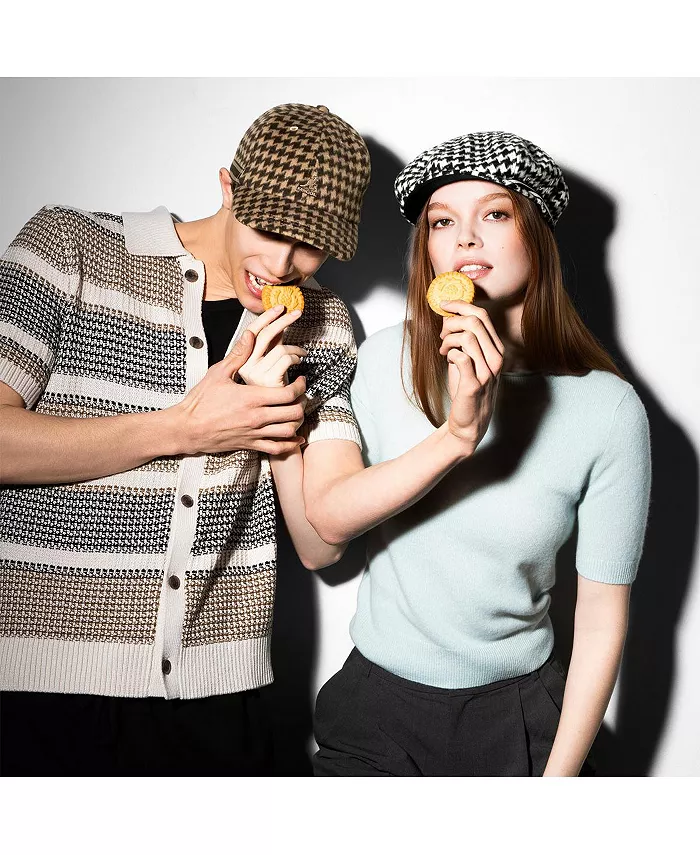 Кепка Block Zig Driving Cap – это восьмипанельная модель из шерстяной ткани с зигзагообразным узором «ёлочка» контрастных цветов. Она украшена полосатой тесьмой в тон, которая начинается по бокам головы и продолжается на спине. Кепка дополнена металлическими люверсами по бокам для вентиляции и логотипом Kangol Kangaroo в тон сзади.