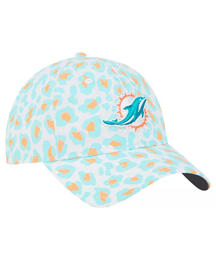 Белая регулируемая шапка Miami Dolphins Active Leopard 9TWENTY для девочек New Era