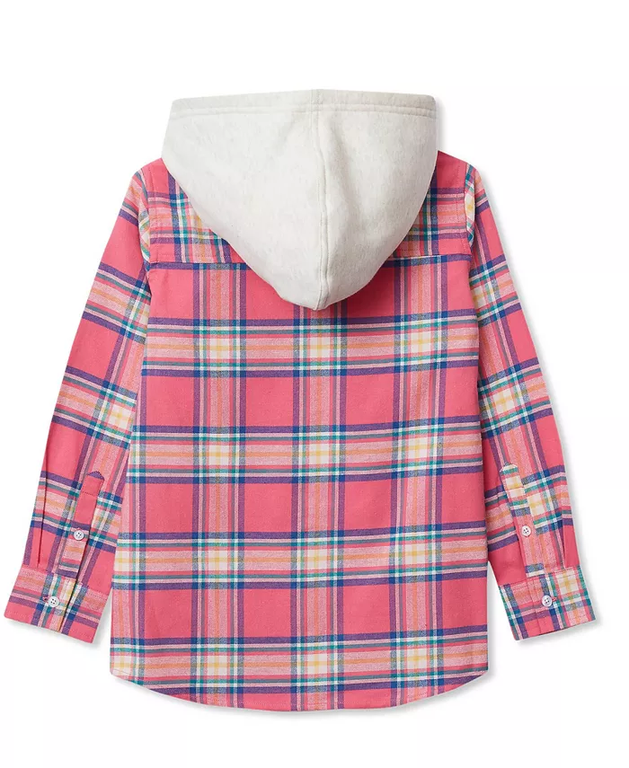 Клетчатая фланель и застёжка на пуговицы создают классический, но прочный образ, а флисовый капюшон делает её ещё уютнее. Эта рубашка «2 в 1» настолько мягкая и тёплая, что дети захотят носить её круглый год.