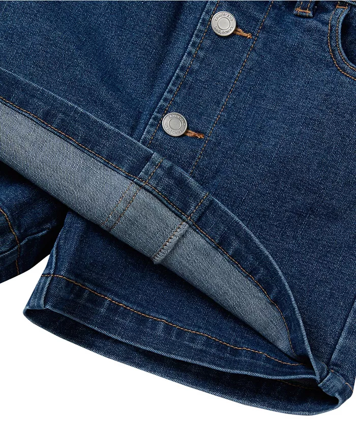 Наша джинсовая юбка-шорты для девочек сочетает в себе стиль и практичность благодаря продуманному дизайну: спереди она выглядит как юбка, но имеет вшитые шорты для активных игр. Декоративные застёжки добавляют стильности, а хлопковая ткань тянется для комфорта. Сочетайте её с джинсовой курткой в ​​тон, чтобы создать идеальный образ.