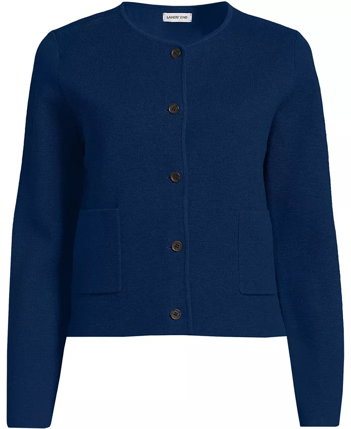 Женский тонкий хлопковый свитер-блейзер Milano Lands' End, синий