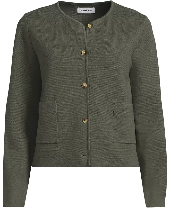 Женский тонкий хлопковый свитер-блейзер Milano Lands' End, зеленый