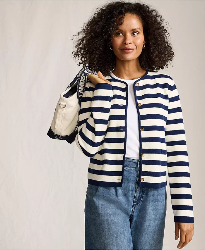 Женский тонкий хлопковый свитер-блейзер Milano Lands' End, белый