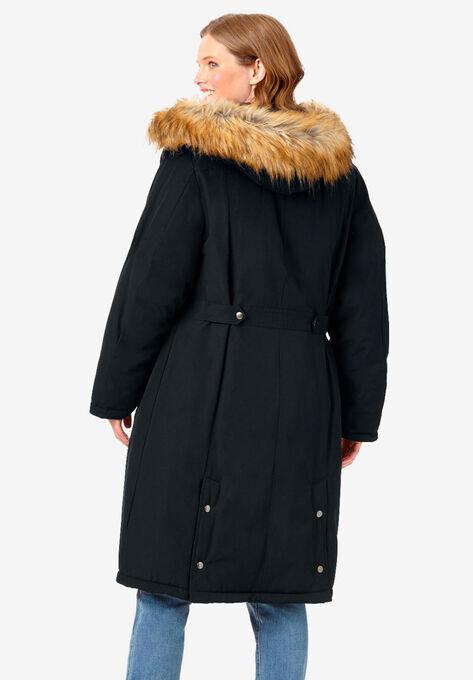 Тёплая длинная парка. Выдержит любую погоду благодаря водонепроницаемому внешнему утеплителю Thinsulate® с двойной подкладкой и уютным пуховым наполнителем. Карманы и капюшон на флисовой подкладке, а также съемная отделка из искусственного меха добавляют дополнительного уюта. Нагрудные карманы, внешние карманы с клапанами и внутренние карманы сохранят всё необходимое под рукой, а трикотажные манжеты на рукавах сохранят тепло вашего тела. Регулируемая талия на застежке, молния спереди с планкой на пуговицах. Длина - 122 см до середины икры.