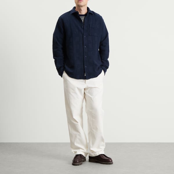 Жаккардовая рубашка Forét River — изысканный и незаменимый аксессуар, сочетающий в себе историческое наследие и современный стиль. Изготовленная из органического хлопка, эта мягкая, но плотная ткань украшена тонкой жаккардовой полоской, которая добавляет текстуру и винтажный вид. Модель отличается четкими линиями и классическим кроем, а продуманные детали, такие как нагрудный карман и застежка на пуговицы, подчеркивают её. Эта рубашка идеально подходит для непринужденных дней, когда требуется элегантный стиль.