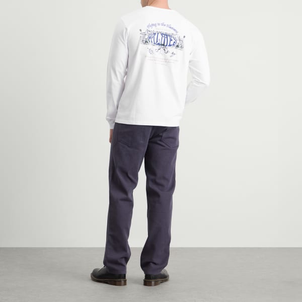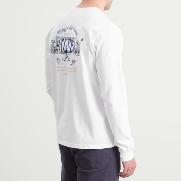 Эта футболка Palmes от бренда Николая Ханссона, вдохновлённого спортивной одеждой, воспевает теннисную культуру. Изготовлена из органического хлопкового джерси, дополнена длинными рукавами и принтом на груди, придающим фигуре ангельский вид.