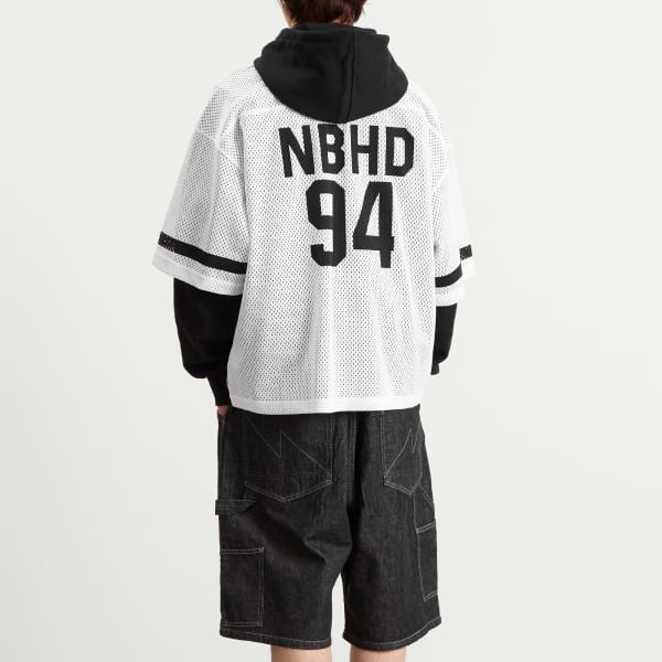 Японский бренд Neighborhood в этой сетчатой хоккейной майке выглядит как американский. Свободный крой и спортивная энергия выражены в ярком фирменном стиле и цифре 94 — красноречивом намеке на год основания бренда.