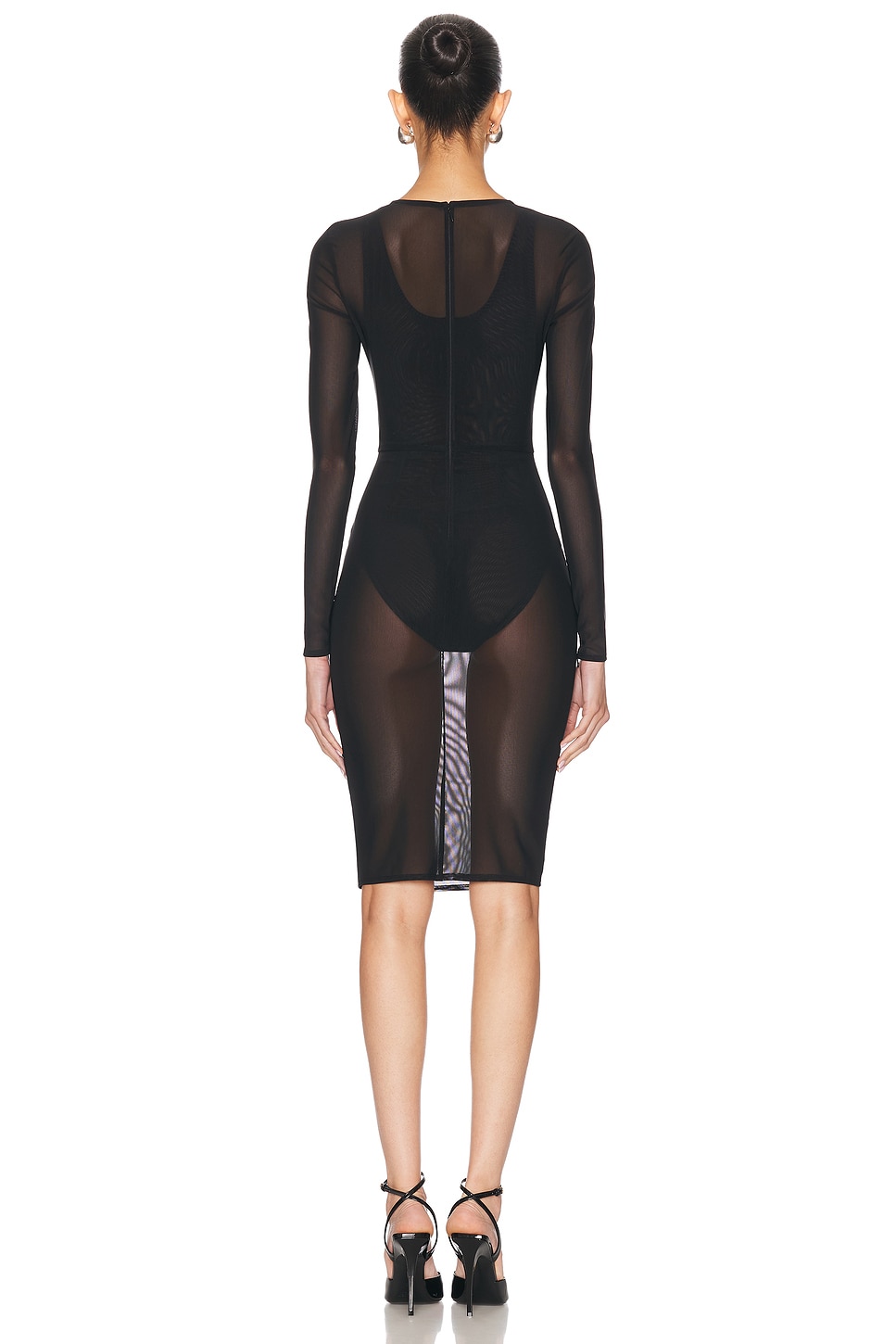 Длинное платье миди с рукавами из сетки Power Mesh Alex Perry, Black
