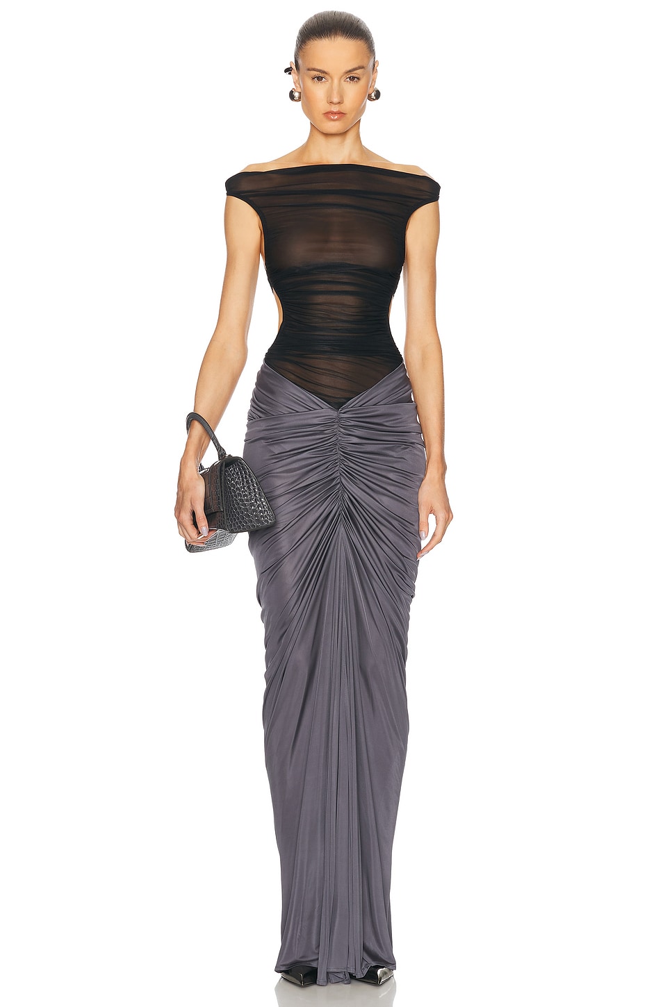 Блестящая трикотажная ткань с массивными сборками