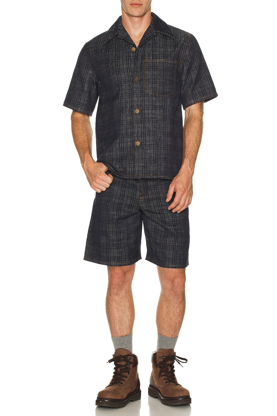 Джинковая рубашка с коротким рукавом Burberry, Indigo Check 52 220₽