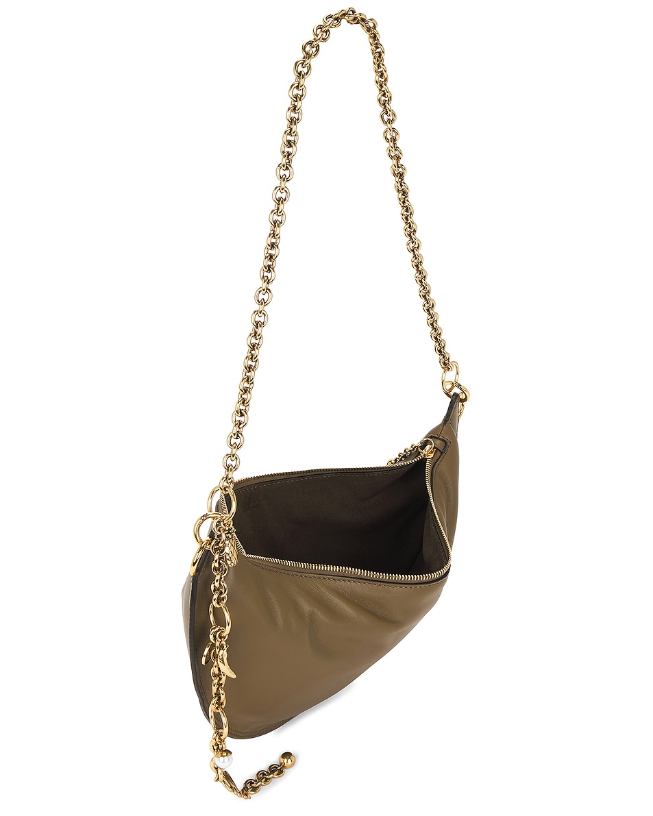 Съемная декорированная цепочка позволяет носить сумку на плече или через плечо.