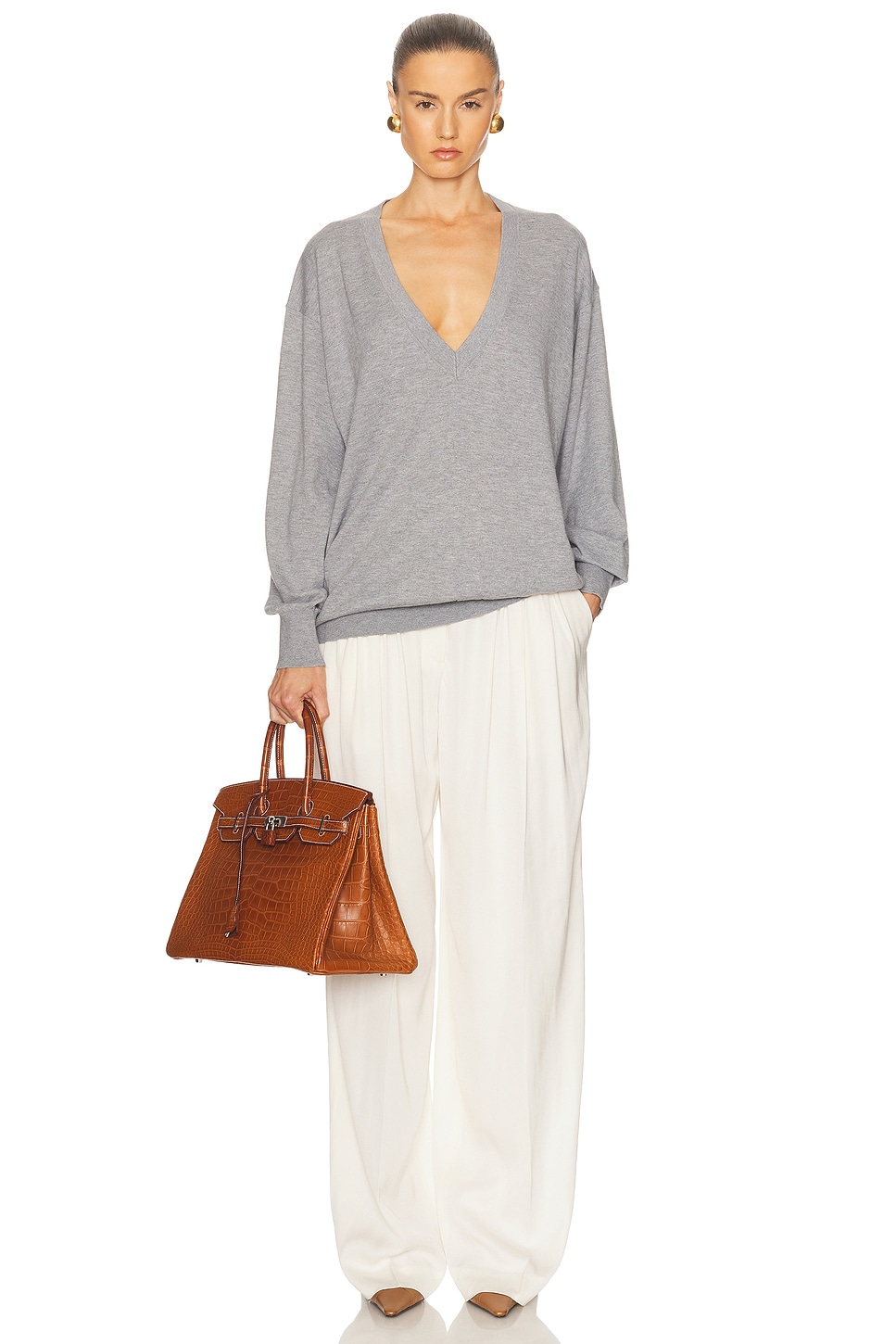 Свитер Quintana с V-образным вырезом оверсайз Helsa, Heather Grey