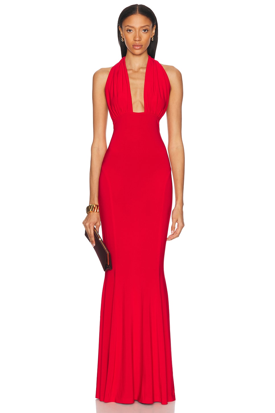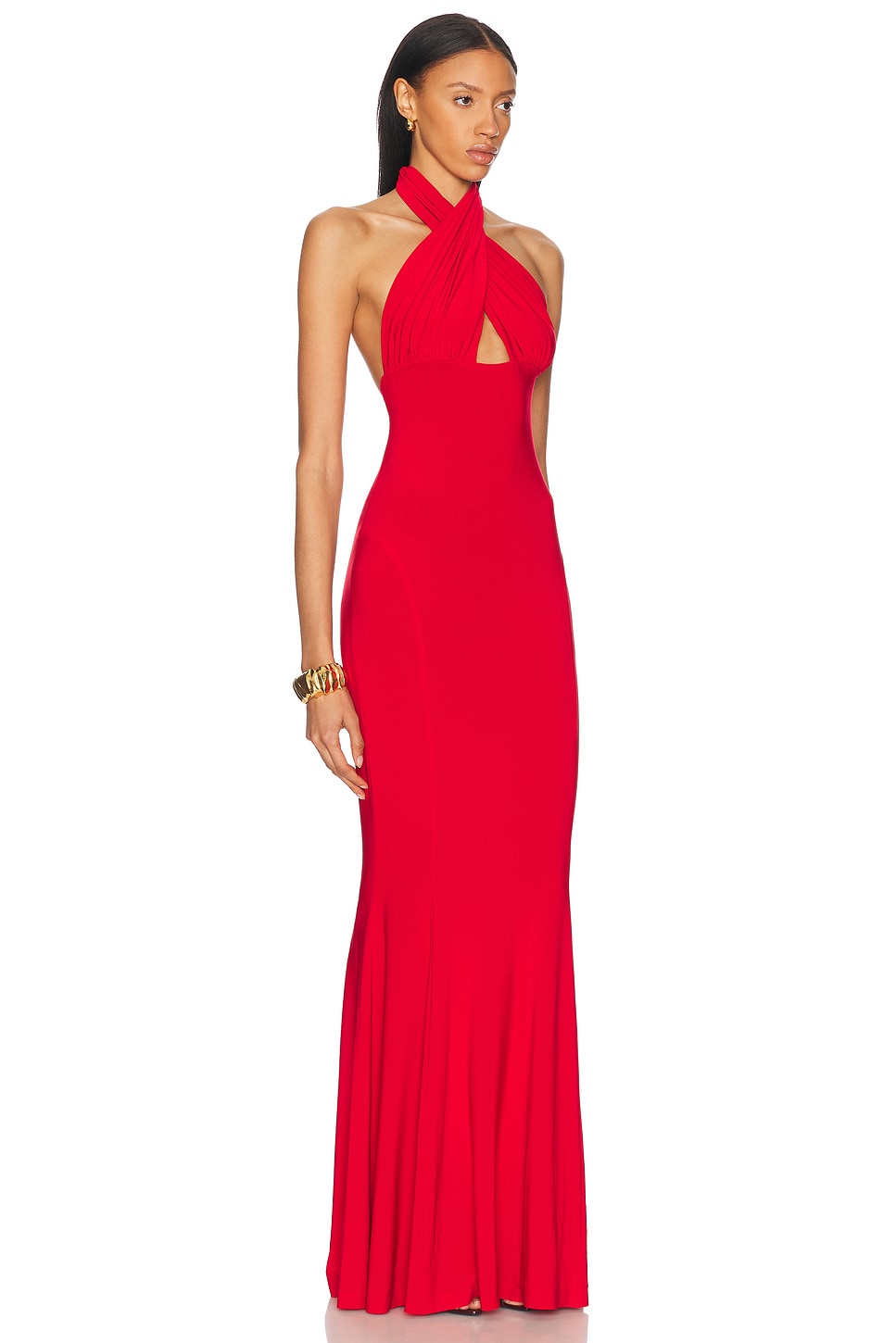 Крестообразное платье-рубашка с разрезом "рыбий хвост" Norma Kamali, Tiger Red
