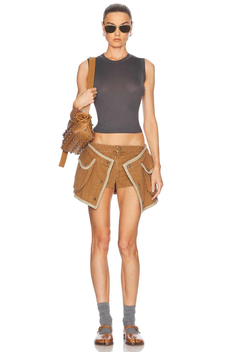 Многослойная юбка-шорты R13, Light Brown & Khaki