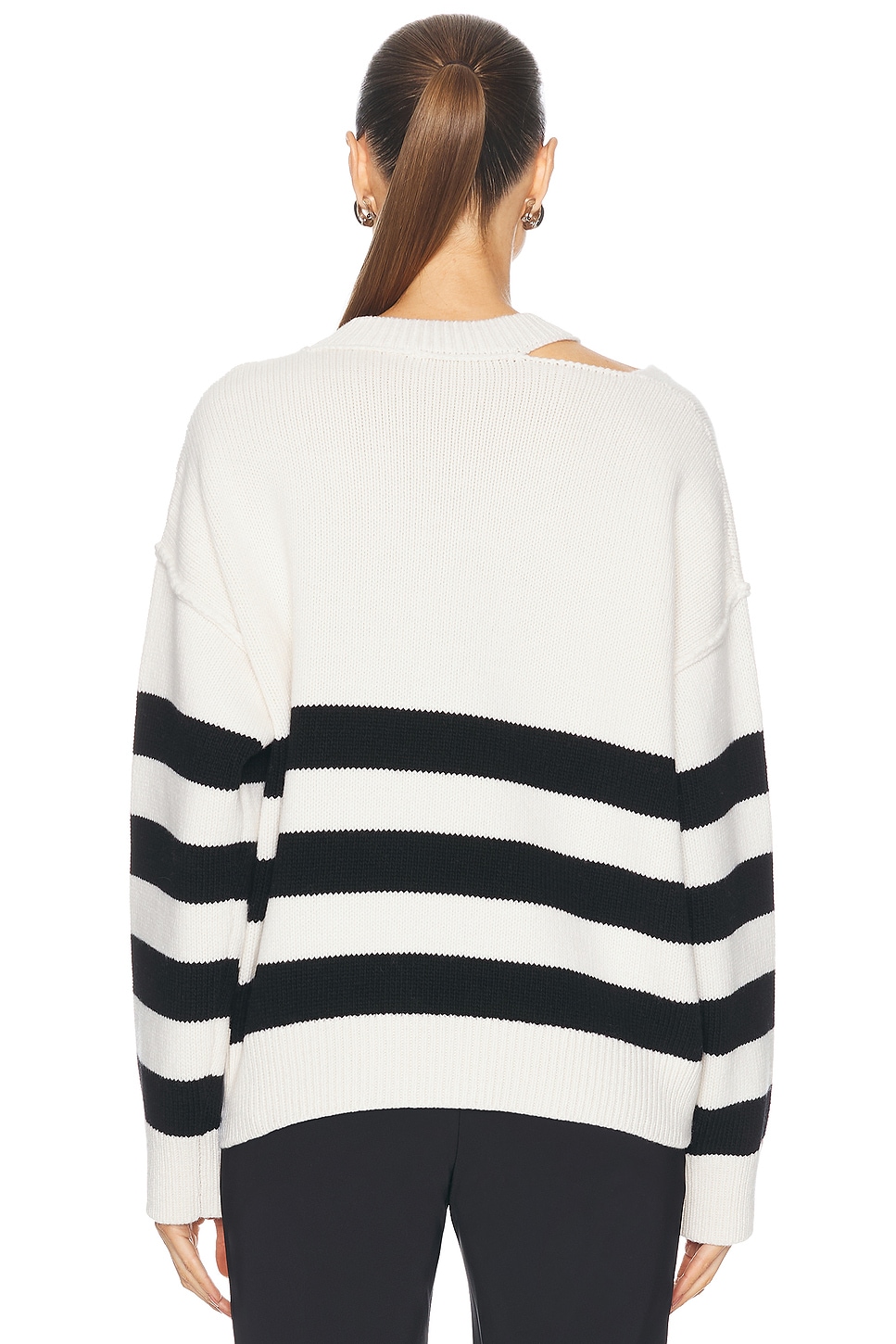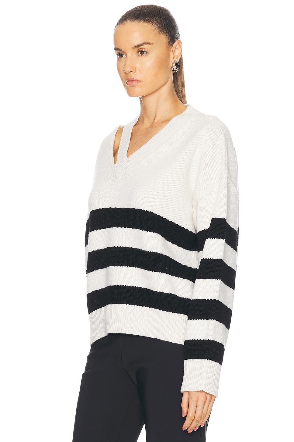 Deconstructed Cashmere Knitted Breton V-Neck Джемпер Rohe, Off White & Black White Stripe