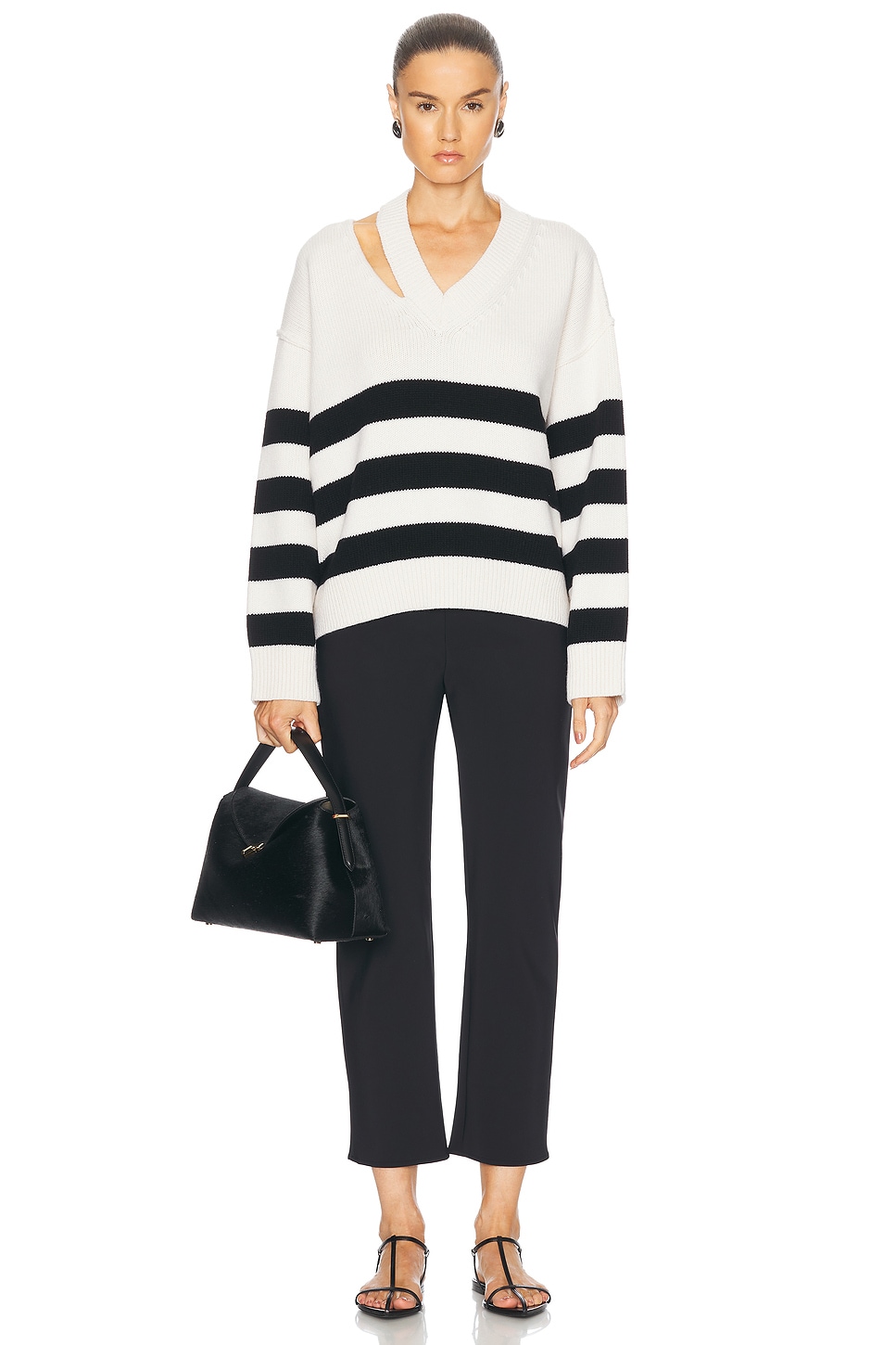 Deconstructed Cashmere Knitted Breton V-Neck Джемпер Rohe, Off White & Black White Stripe 19 667₽